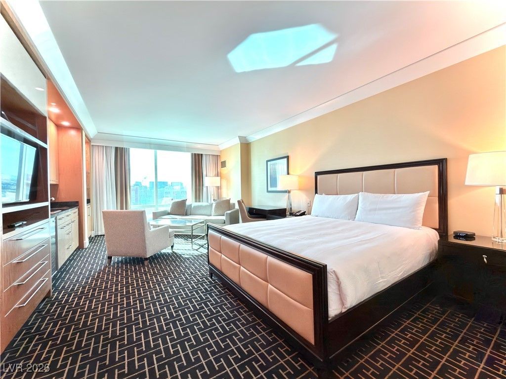 Experience Luxury living from this exclusive 38th-floor condo-hotel unit with plush king bedding, a sitting area, and a marble spa-like bathroom, sleek modern furnishings, and seamless king layouts-pure high-rise elegance. Floor-to-ceiling windows provide a breathtaking, unobstructed panoramic south-facing vista of the Las Vegas Strip and the mesmerizing Sphere! Amenities include a fitness center, a rooftop pool, a 24/7 concierge, and valet parking. Directly adjacent to Fashion Show Mall, just 1 minute away, I-15 has instant access. An optional rental program for income potential. The adjacent condo unit 3804 can also be purchased together.