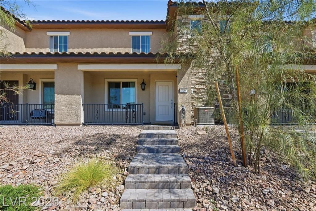 Modern design meets effortless living in this 2022-built residence that remains in pristine condition & offered partially furnished. The heart of the home is a stylish kitchen appointed with quartz countertops, contemporary backsplash, SS appliances, glass-front pantry, & sleek modern cabinetry. Continuous upgraded flooring throughout creates a polished, model-like feel across the entire home. The spacious primary suite is designed for comfort with a dual-sink vanity, walk-in shower, upgraded closet, & breathtaking valley views that provide the perfect evening backdrop. Additional features include epoxy-coated garage floors, extended paver driveway, & thoughtful finishes throughout that elevate both style & functionality. Conveniently located within walking distance to community amenities including the central pool, park, fitness court, pickleball courts, & playground. Set within the Cadence community just minutes from premier dining, shopping, & entertainment. Welcome Home!